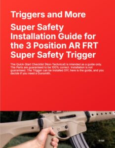 The Quick-Start Checklist (Non-Technical) is intended as a guide only. The Parts are guaranteed to be 100% correct. Installation is not guaranteed. The Trigger can be installed DIY; here is the guide, and you decide if you need a Gunsmith.
